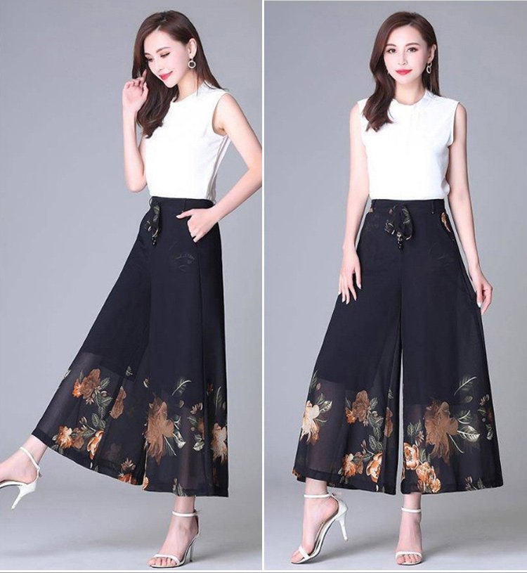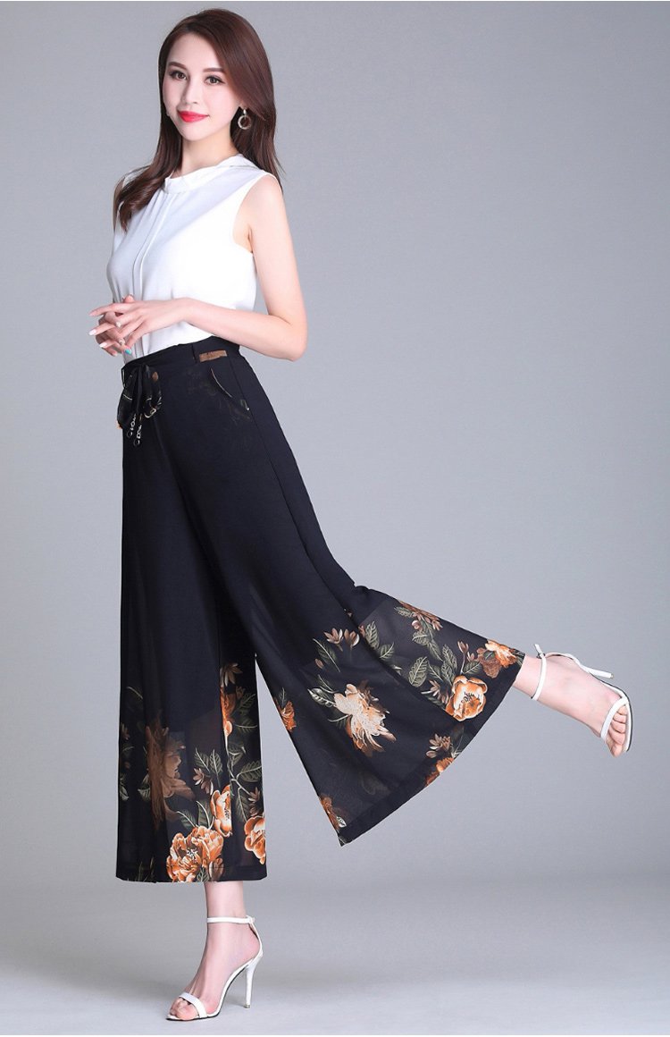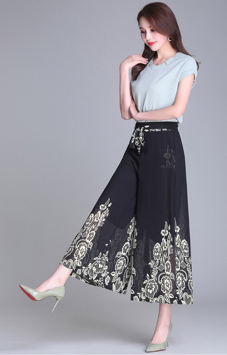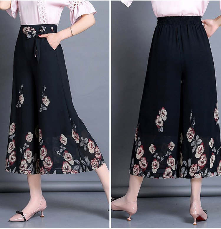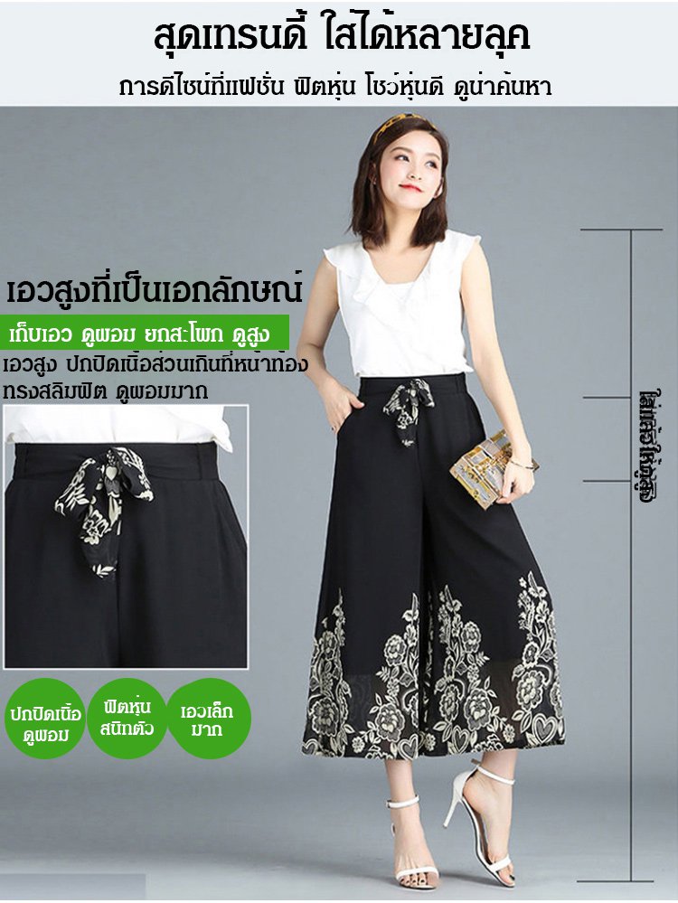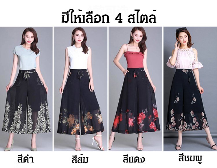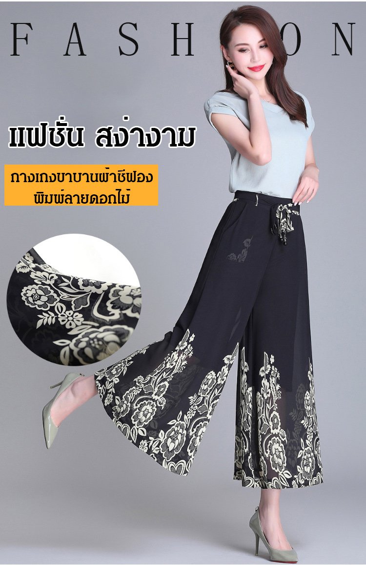 กางเกงคูลอตผ้าชีฟองผู้หญิง พิมพ์ลายดอกไม้