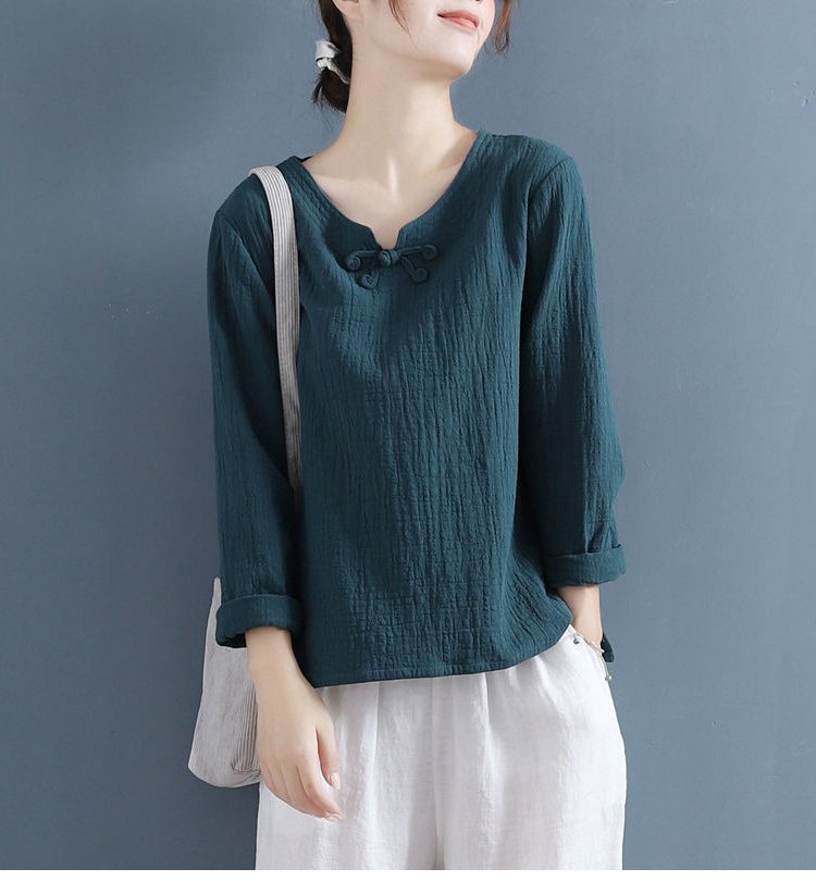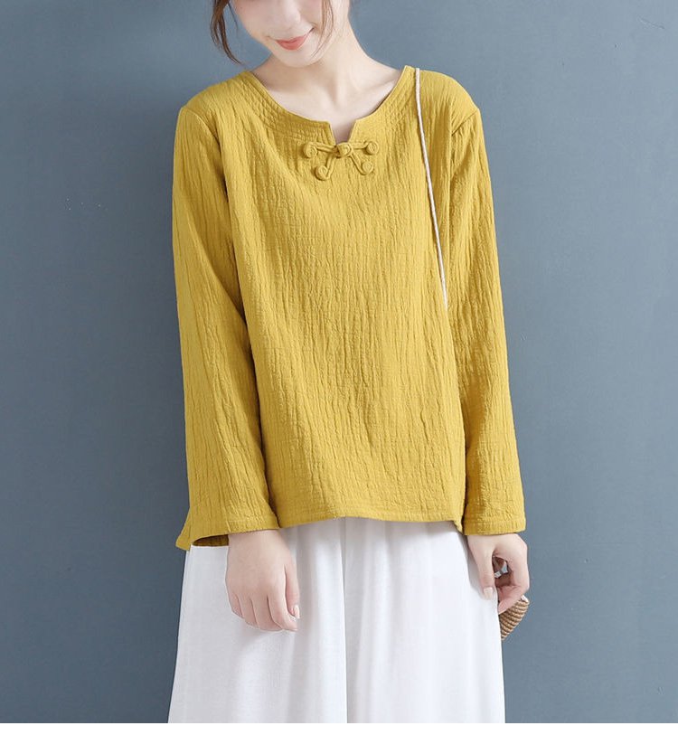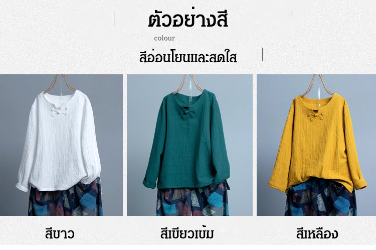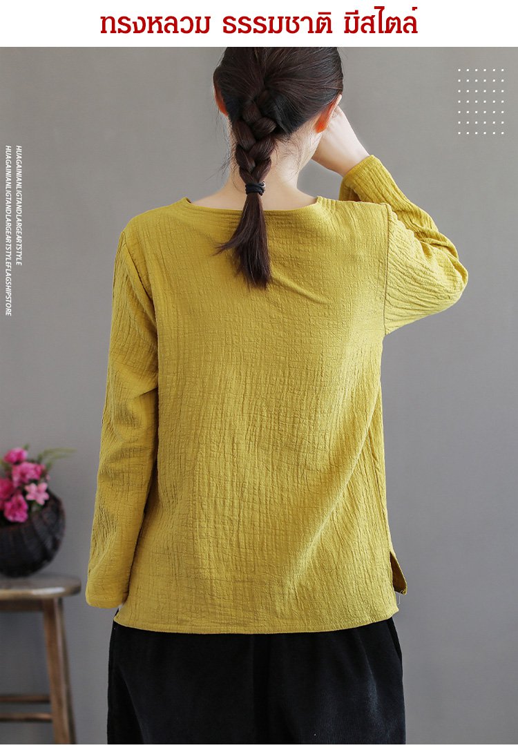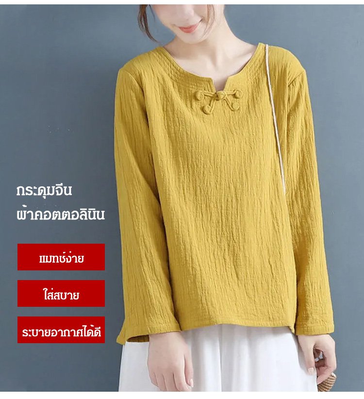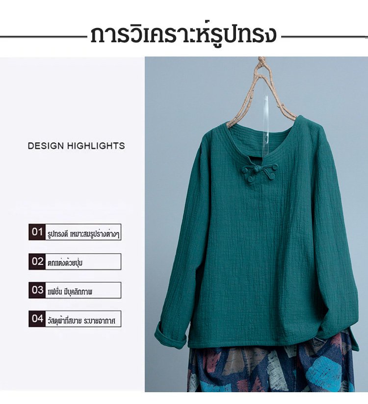 เสื้อแขนยาวติดกระดุมจีน ผ้าคอตตอนลินิน สไตล์อาร์ท ๆ