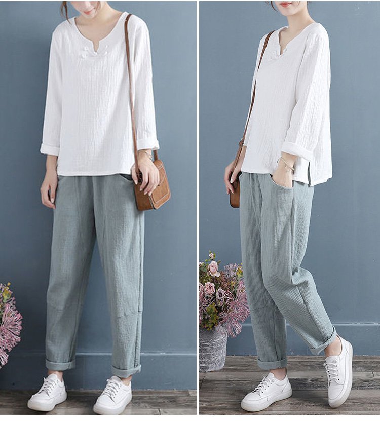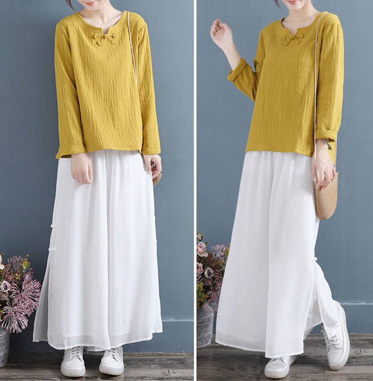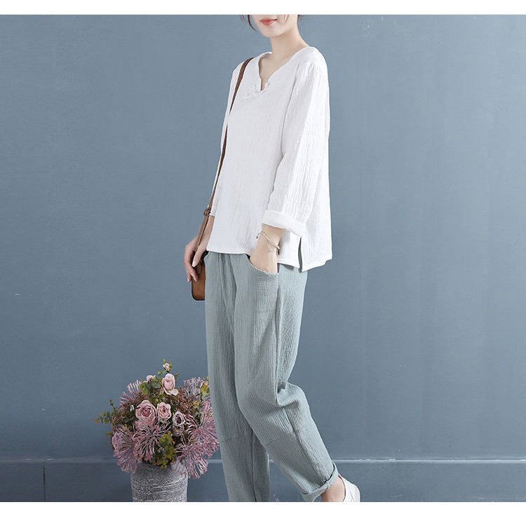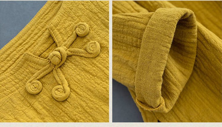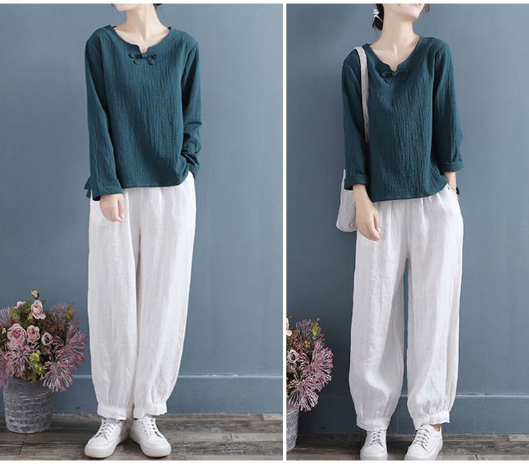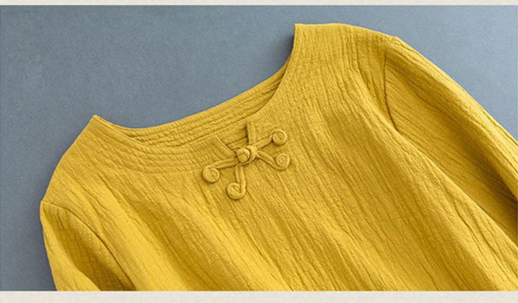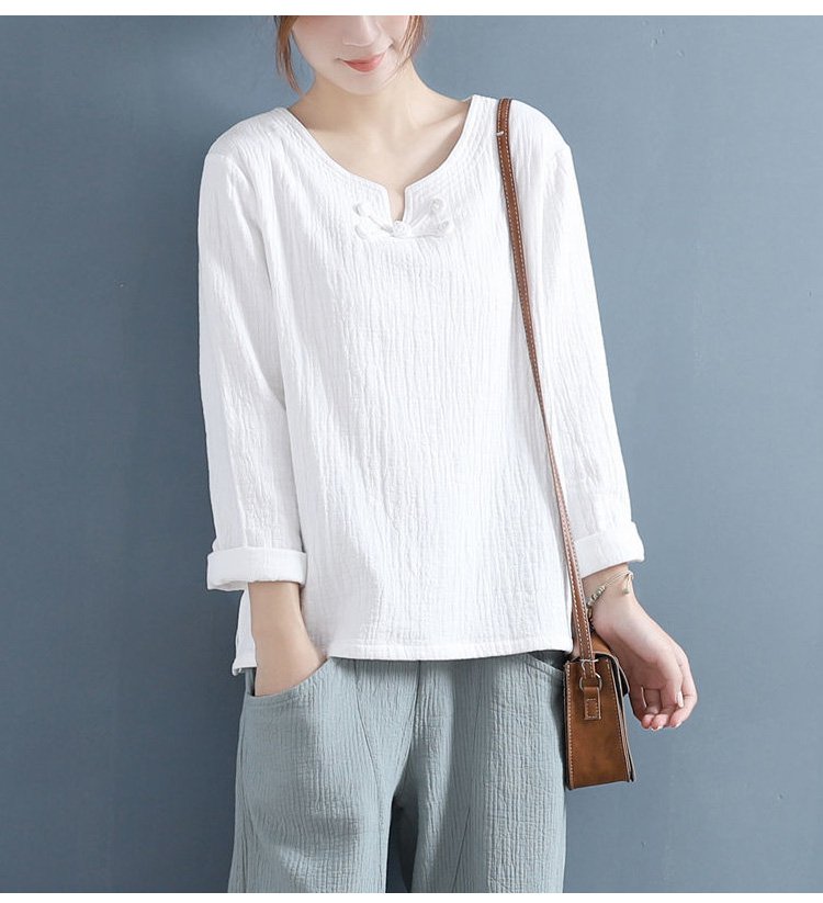 เสื้อแขนยาวติดกระดุมจีน ผ้าคอตตอนลินิน สไตล์อาร์ท ๆ